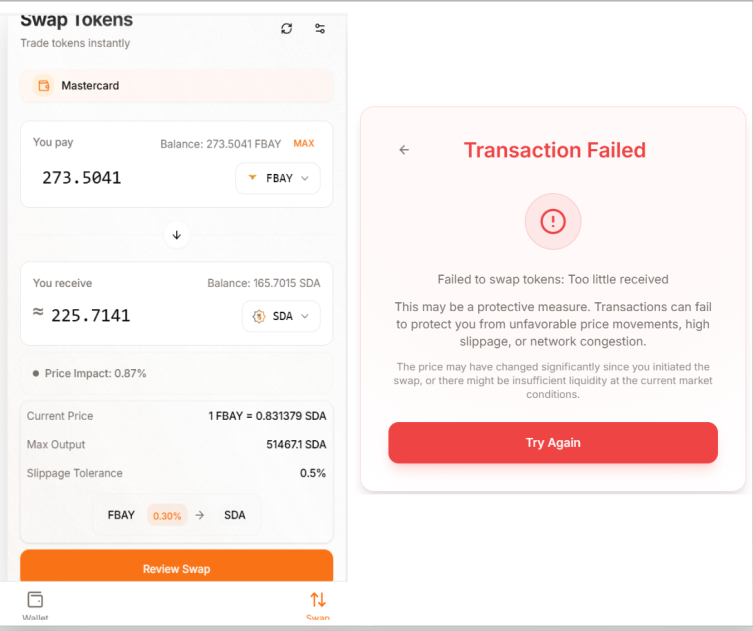 I swap my 100 sidra to falconbay token. now the value of sidra is more than double. it became 225. but I can't swap back to sidra token ,