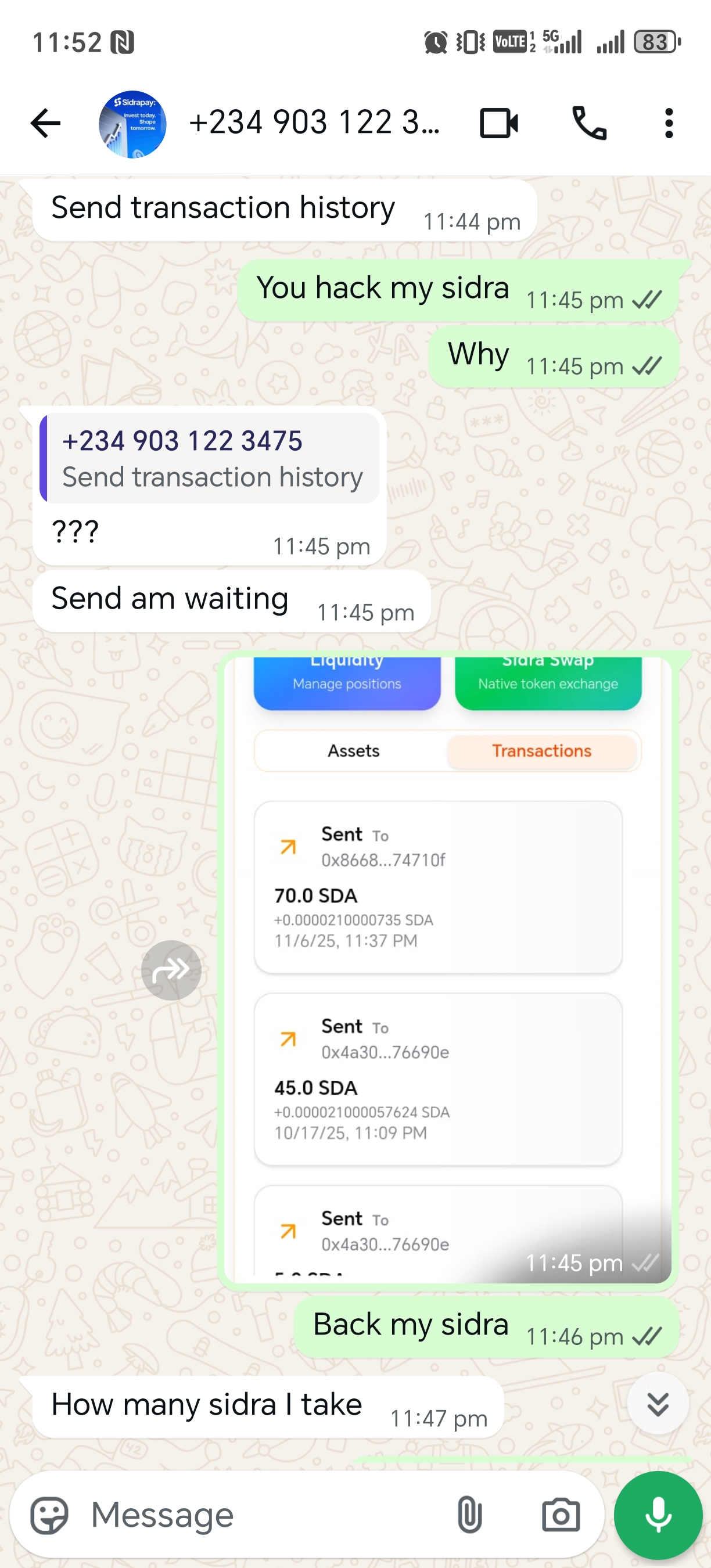 I clicked a phishing link [Sidratradep2p.com], afterwards tokens were transferred without my authorization)